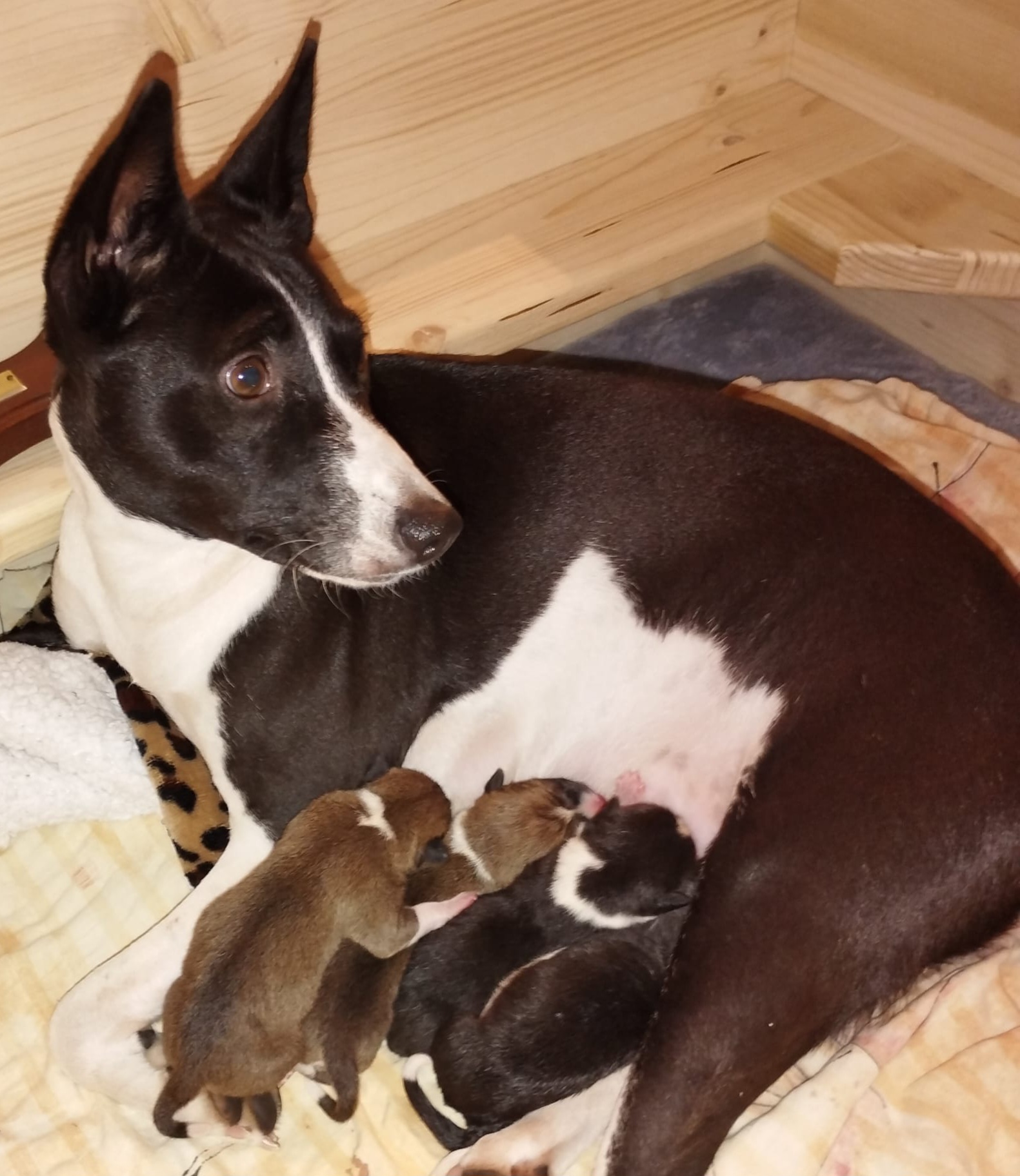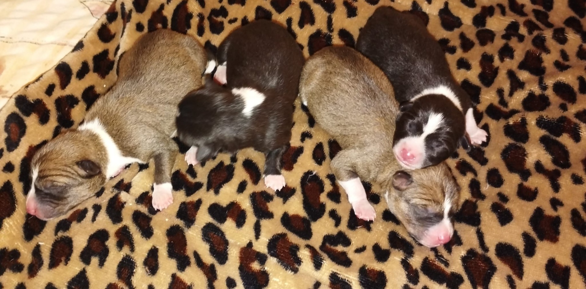 V podvečer 20.12. 2023 se narodila v naší chovné stanici ze spojení Evonty EASTER BUNNY aka Archie a naší Abibu Any-Nya aka Abi 4 krásná štěňátka. Narodila se v pořadí: